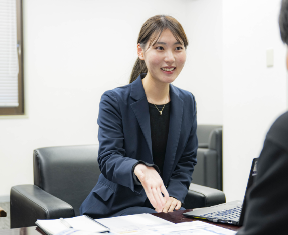 グループ従業員の福利厚生である団体自動車保険や、不動産事業本部との連携による火災保険の推進を通じて遠鉄グループの総合力も実感。困っている方に寄り添い、手続きのサポートなどを行います。