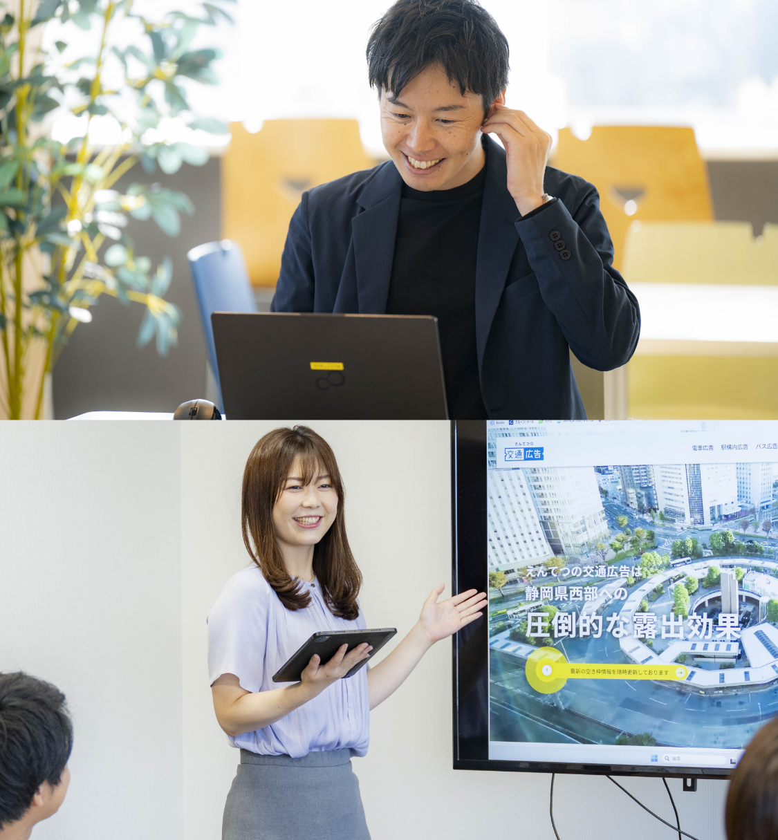 遠鉄グループのハウスエージェンシーとして、各社の広告宣伝やデジタルマーケティング施策の企画提案を行います。経営を理解し、近い領域で事業戦略に基づいた戦略の提案をすることが可能です。