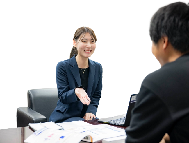 遠鉄ではチームを組んで仕事を行います。入社後は先輩のサポートのもと仕事を覚えていただきます。なお生命保険部では自社のコールセンターと連携をし、担当を分けた営業支援体制をとっています。一般的に保険営業業務でイメージされやすいノルマ達成のための飛び込み、家族や友人への営業などはなく、自分の仕事に専念できます。