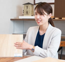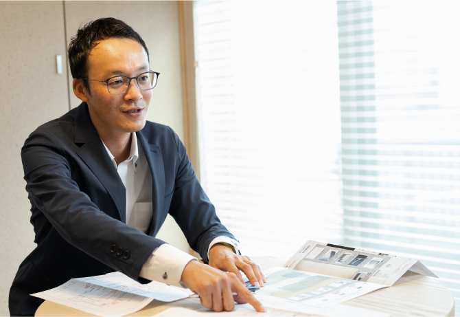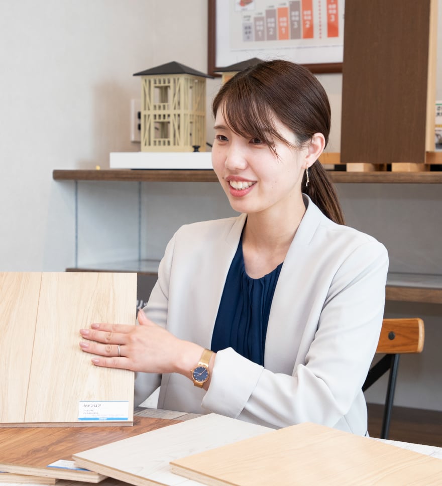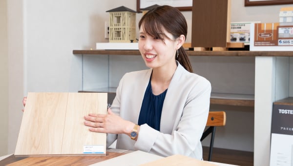 大枠の間取りを設計し、詳細は外部の設計事務所と、内装のカラーなどはインテリアコーディネーターと連携し、指導、チェックなどの管理を行います。また、新商品の開発では中心となって進めます。