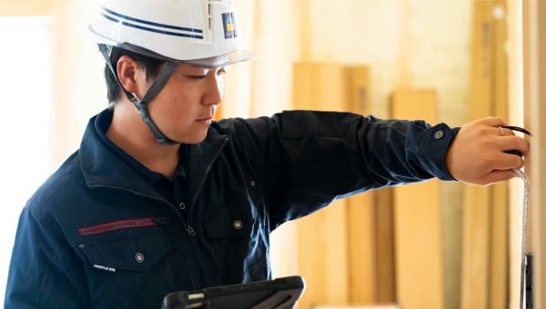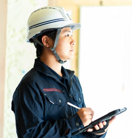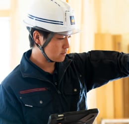 設計課と現地協力スタッフと連携し、年間200棟超の分譲・注文住宅の現場で施工管理を行います。施工管理アプリ「Kizuku」の導入で、働きやすさと高品質な家づくりができる環境を両立させています。