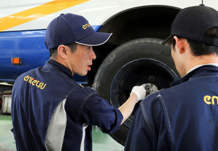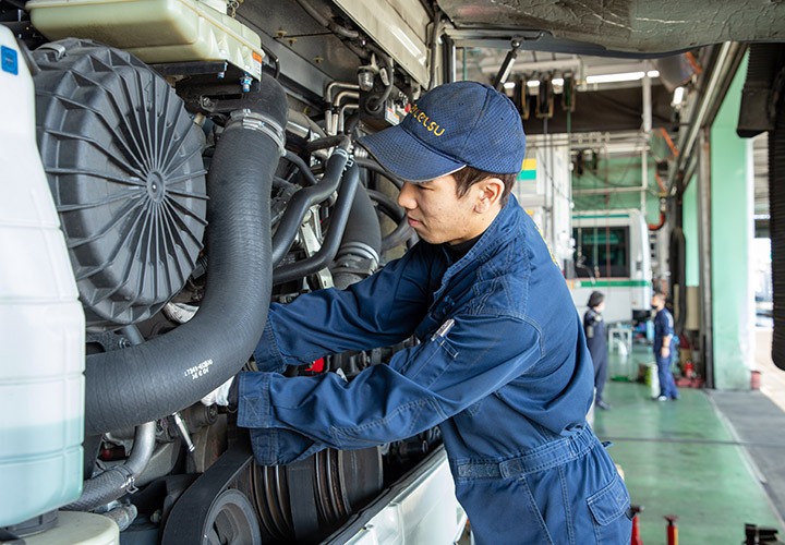 自社バスの整備から始まった整備工場ならではの高い技術を身に付けられる